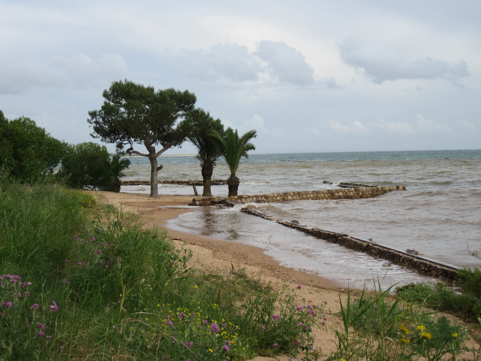 foto victor nogueira - foz da ribeira da ajuda e estuário do rio sado, em setúbal, vendo-se o murete para protecção do que resta do sítio romano da comenda - PHOTO-REPORTAGEM EM a ribeira da ajuda e o complexo romano da Comenda
